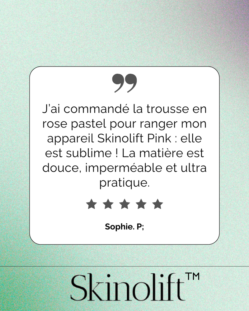Disponible en deux teintes exclusives — rose pastel et vert émeraude — elle s’accorde parfaitement avec les appareils Skinolift™ Pink & Green.